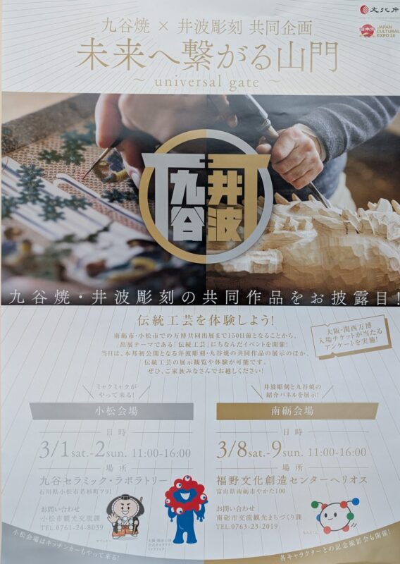 2025.03.08 ニュース 伝統工芸の魅力が融合!九谷焼 × 井波彫刻 コラボイベント 日本の誇る伝統工芸、九谷焼と井波彫刻が手を組んだ、特別なコラボレーション作品の展示やワークショップが福野のヘリオスにて開催されます! …